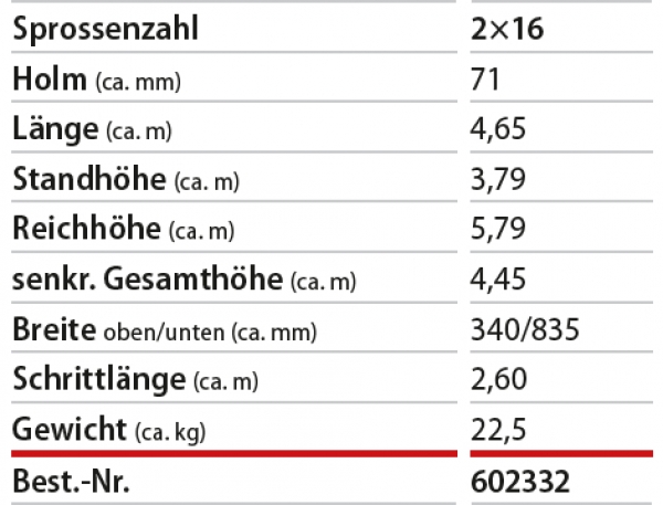 Hymer 6023 Sprossenstehleiter, beidseitig begehbar 2x16 Sprossen, Reichhöhe ca. m: 5,79