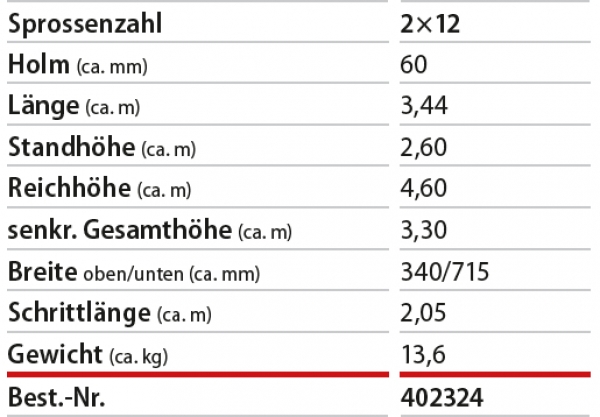 Hymer 4023 Sprossenstehleiter, beidseitig begehbar 2x12 Sprossen, Reichhöhe ca. m: 4,60