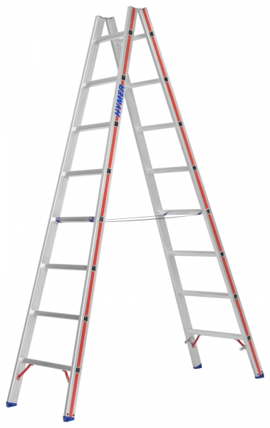 Hymer 6023 Sprossenstehleiter, beidseitig begehbar 2x8 Sprossen, Reichhöhe ca. m: 3,63