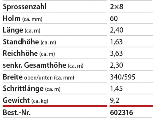 - Entsprechend DIN EN 131-1/-2 geprüft, Verwendung professional (gewerblich) und non-professional (häuslich / privat)