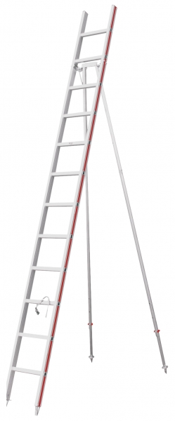 - Bei der freistehenden Verwendung ist der Neigungswinkel der Stützen annähernd gleich dem Leiterteil zu wählen.