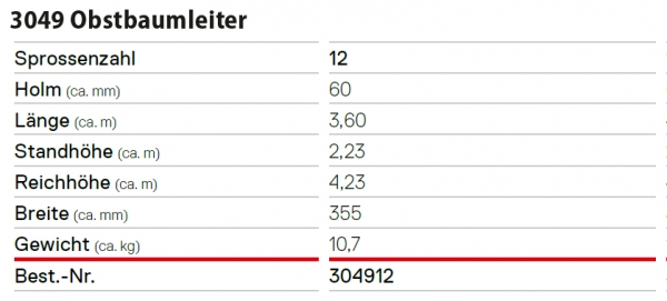 Hymer 3049 Obstbaumleiter einteilig, 1x12 Sprossen, Länge ca. m: 3,60