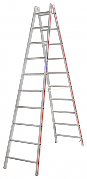 Hymer 4023 Sprossenstehleiter, beidseitig begehbar 2x10 Sprossen, Reichhöhe ca. m: 4,07