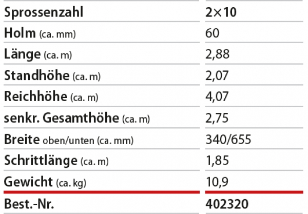 - Sprossenzahl: 2x10