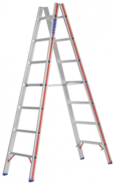 Hymer 6023 Sprossenstehleiter, beidseitig begehbar 2x7 Sprossen, Reichhöhe ca. m: 3,36