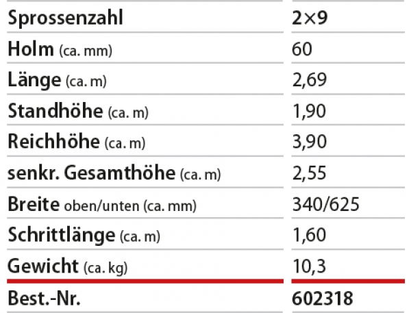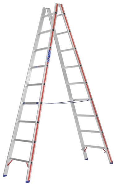 Hymer 6023 Sprossenstehleiter, beidseitig begehbar 2x9 Sprossen, Reichhöhe ca. m: 3,90
